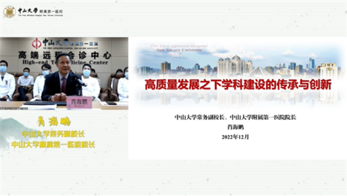 中山大學附屬第一醫院院長肖海鵬教授介紹了中山大學附屬第一醫院的醫院歷史沿革、學科發展概況、學科建設理念與格局創新的舉措和成果。學科的發展推動了醫學科技創新成果,包括全球首先研制出同源無機骨和人造骨應用于臨床、全球首例100%燒傷病人搶救成功、全球首例“無缺血”肝移植、腎移植和心臟移植以及一系列國內首創技術。在學科高質量發展方面,中山大學附屬第一醫院通過一、打造一體化創新平臺,凝練學科融合發展新方向;二、創新人才引培新模式,增添學科發展新動力;三、構建科學的數字化、多維度、分類別評價體系三大舉措,取得了累累成果。